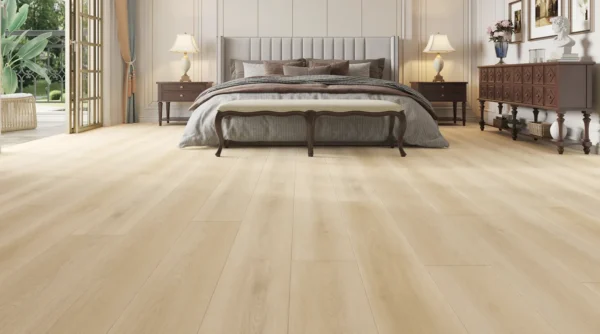 Blending strength and style, this 9″ luxury Rigid Core SPC flooring is completely waterproof and scratch-resistant. Featuring an embossed grain texture and a sleek matte finish, the Bliss offers the natural beauty of wood with the ease of click installation.