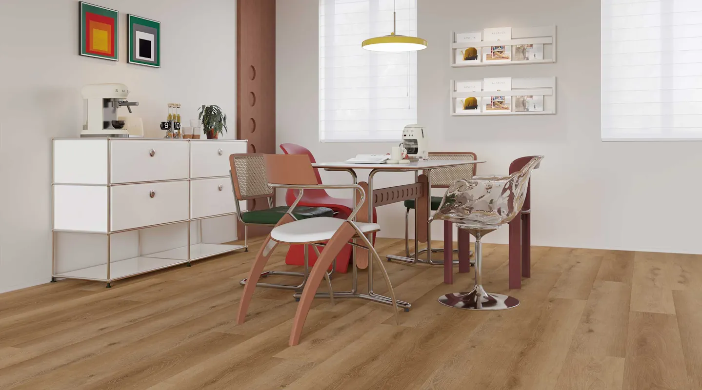 This 9″ wide luxury Rigid Core SPC flooring is 100% waterproof and scratch-resistant, offering durability without compromising style. Designed for easy click installation, it features a contemporary matte finish and an embossed grain texture, delivering the authentic feel of natural wood underfoot.